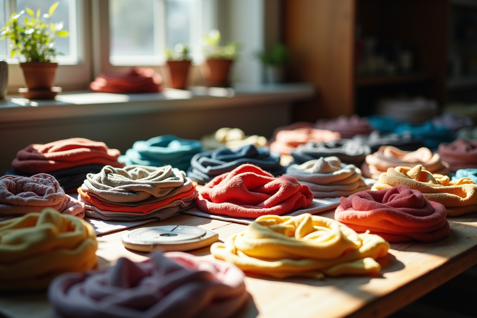Achte beim Waschen auf die Temperaturangaben. Die meisten Jersey- und Baumwollstoffe vertragen 30 bis 40 Grad in der Maschine. Empfindliche Stoffe wie Seide oder Wolle sollten per Hand oder im speziellen Schonwaschgang gereinigt werden. Verwende ein mildes Waschmittel ohne Bleichmittel, um die Farben zu schonen. Beim Trocknen gilt: Die meisten Stoffe bevorzugen die Lufttrocknung. Der Trockner kann Fasern strapazieren und die Lebensdauer deiner Kleidung verkürzen. Bügeln solltest du immer von der linken Stoffseite, um Glanzstellen oder Beschädigungen auf der Sichtseite zu vermeiden.