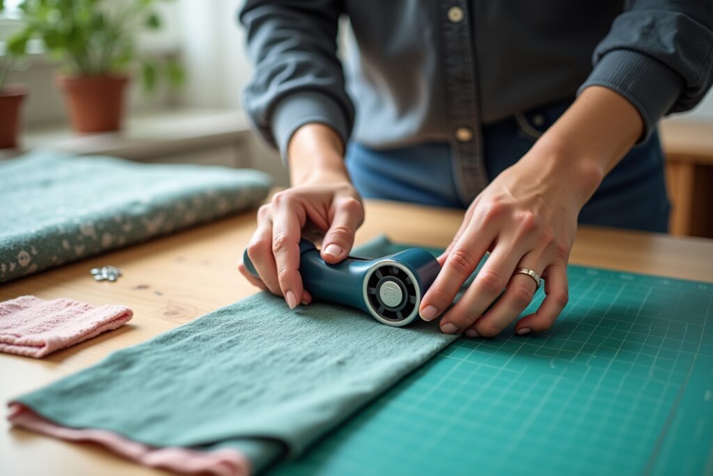 - Dickere Stoffe (z.B. Wolle, Filz, Loden): Für diese Stoffe benötigst du eine sehr scharfe und stabile Stoffschere oder einen starken Rollschneider. Eventuell sind mehrere Schnitte nötig, um den Stoff sauber zu durchtrennen.
